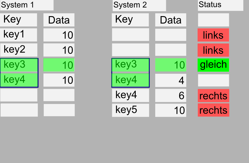 1: my $result = List::FullCompare->compare( 2: left => $left, # AoH 3: right => $right, # AoH 4: keycols => ['id'], 5: valcols => ['waehrung'], 6: numcols => ['betrag'], 7: );